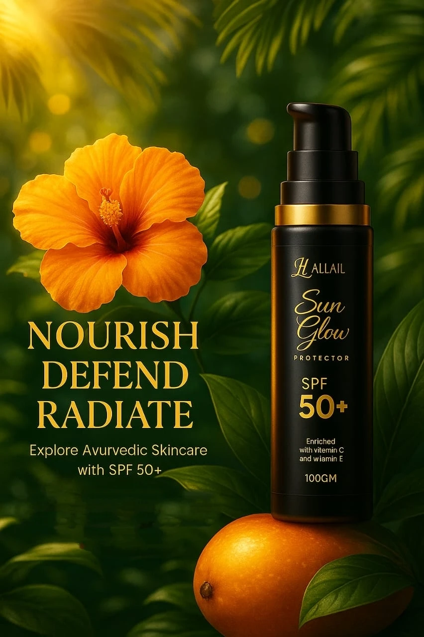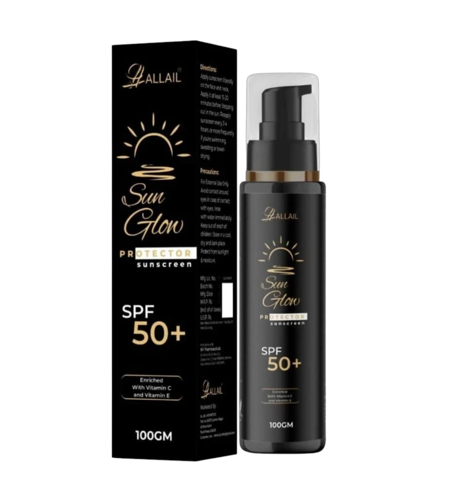 ALLAIL SUN GLOW PROTECTOR Powerful SPF 50+ Protection with Vitamin C & E Glow Fearlessly. Shield Confidently.ALLAIL’S AYUMETICS SUN GLOW is Encapsulates UV Filters For Longer Skin Residence, Providing A Perfect Shield Against Harmful UV Rays Without Absorption. It’s Even Spread ability Enhances UV Protection, This Protects Skin Cells, Essential For Shielding Against UV Radiation And Blue Light. SUN- GLOW Sunscreen Acts As a Second Skin Shield, Protecting Against Pollution And Damage, Ensuring Daily Skin Health. Sun- Glow Sunscreen Acts As An Anti-Aging, Antioxidant, And Anti-Photo aging Agent. The Ultimate Sunscreen For Your Skin. ALLAIL’S AYUMETICS SUN GLOW is Free from toxins, this sunscreen has a safe & effective formulation that offers a visible difference in 3-6 weeks. Those looking for a non-greasy, fragrance-free broad spectrum protection against UV rays and blue light. Anyone with normal, oily, acne-prone or blemish-prone skin can use this sunscreen. Enriched in Vitamin c & EBroad Spectrum Protection Enriched with Vitamin C & E Non-Greasy, Quick Absorption Blocks UVA + UVB rays Helps repair & brighten skin Lightweight formula for all skin types. Sun Glow Protector 50+ Vitamin C & E Sun Glow Protector 50+ Vitamin C & E Non-greasy Outdoor & daily protection Herbal Day Cream 30 Aloe Vera, Licorice Creamy Everyday light protection Night Glow Moisturizer (soon) — Almond Oil, Shea Rich & creamy Night hydration |
