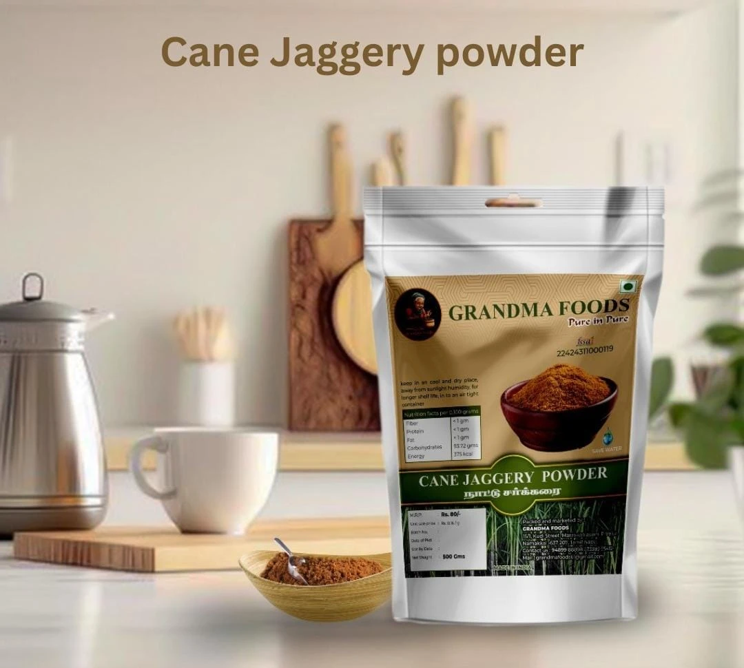 Our Natural Cane Jaggery is prepared in stainless steel 304 food grade Kadar wok on firewood. Plant based coagulant (okra pulp) used to treat the sugarcane liquid. The crushed jaggery powder is naturally dried. |