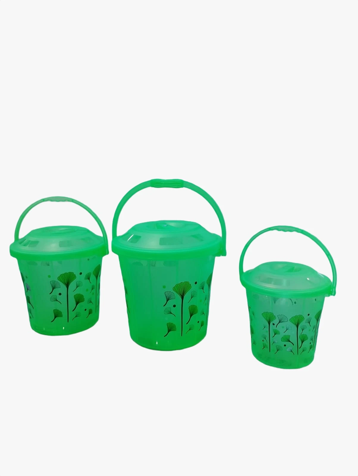 Combo of 3 Plastic Container Buckets - Green 17 L, 13 L & 7 L