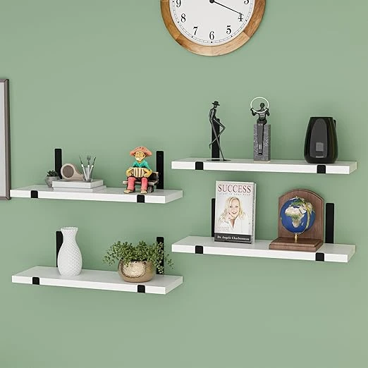 Kuber Industries 4 Pcs Set Wooden Wall Shelf for Bedroom | 16x5 Inch Floating Sh