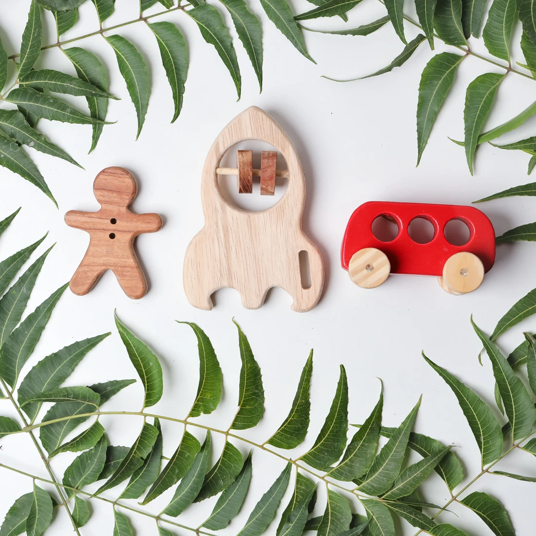 The Opa Toys Wooden Human Teether, Rocket Rattle & Racing Red Bus Combo is a perfect 3-in-1 play set that combines teething relief, sensory stimulation, and imaginative play. This set includes a human-shaped neem wood teether to gently soothe sore gums, a rocket-shaped wooden rattle to engage auditory senses, and a racing red wooden bus toy to spark creativity and movement. Handcrafted from 100% natural neem wood, each piece is smooth, non- toxic, and lightweight—perfect for little hands. Ideal for newborns and infants, this combo encourages early skill-building through safe, eco-friendly play. Specifications: