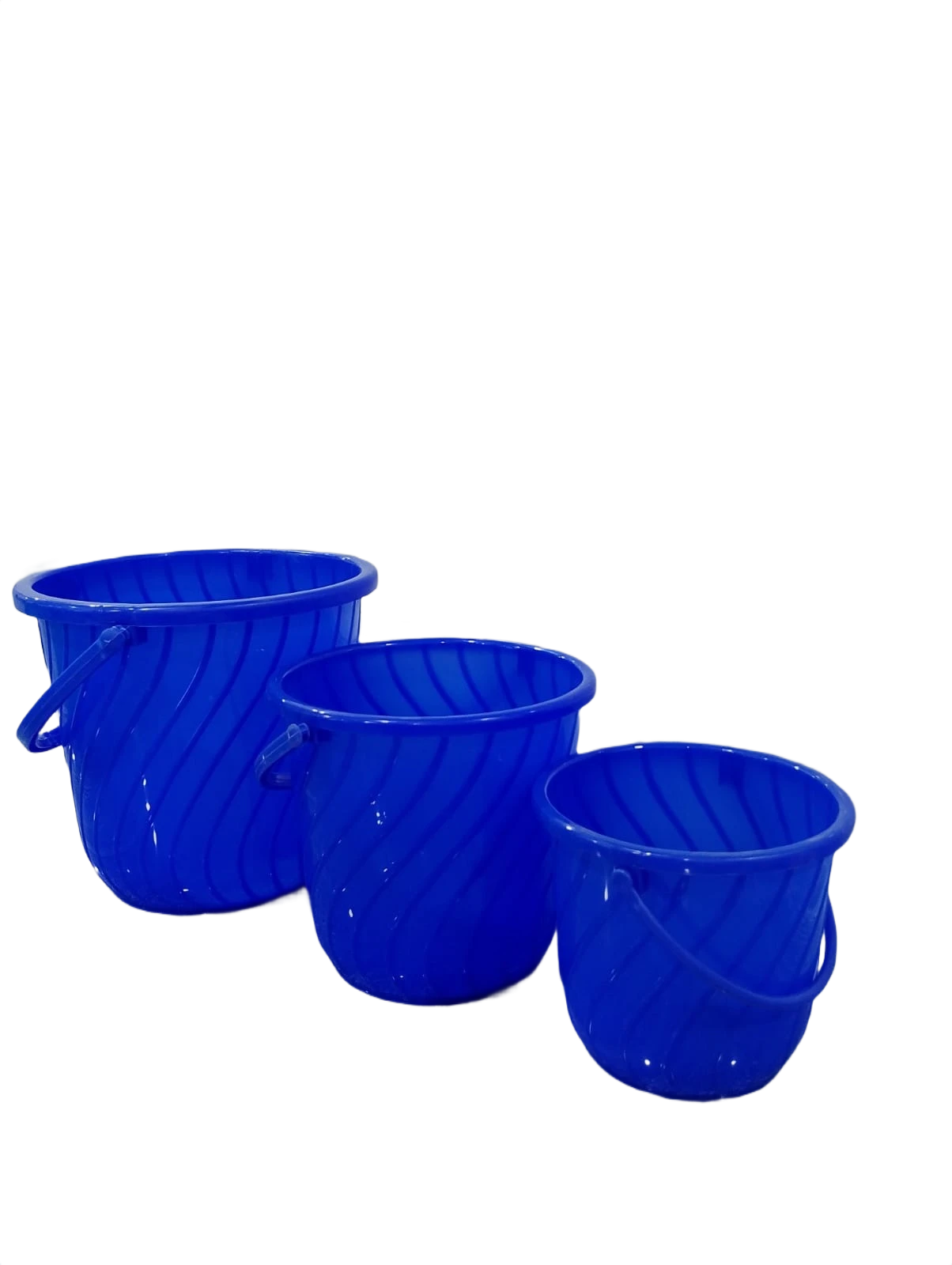 Pack of 3 plastic buckets designed for everyday household needs. |