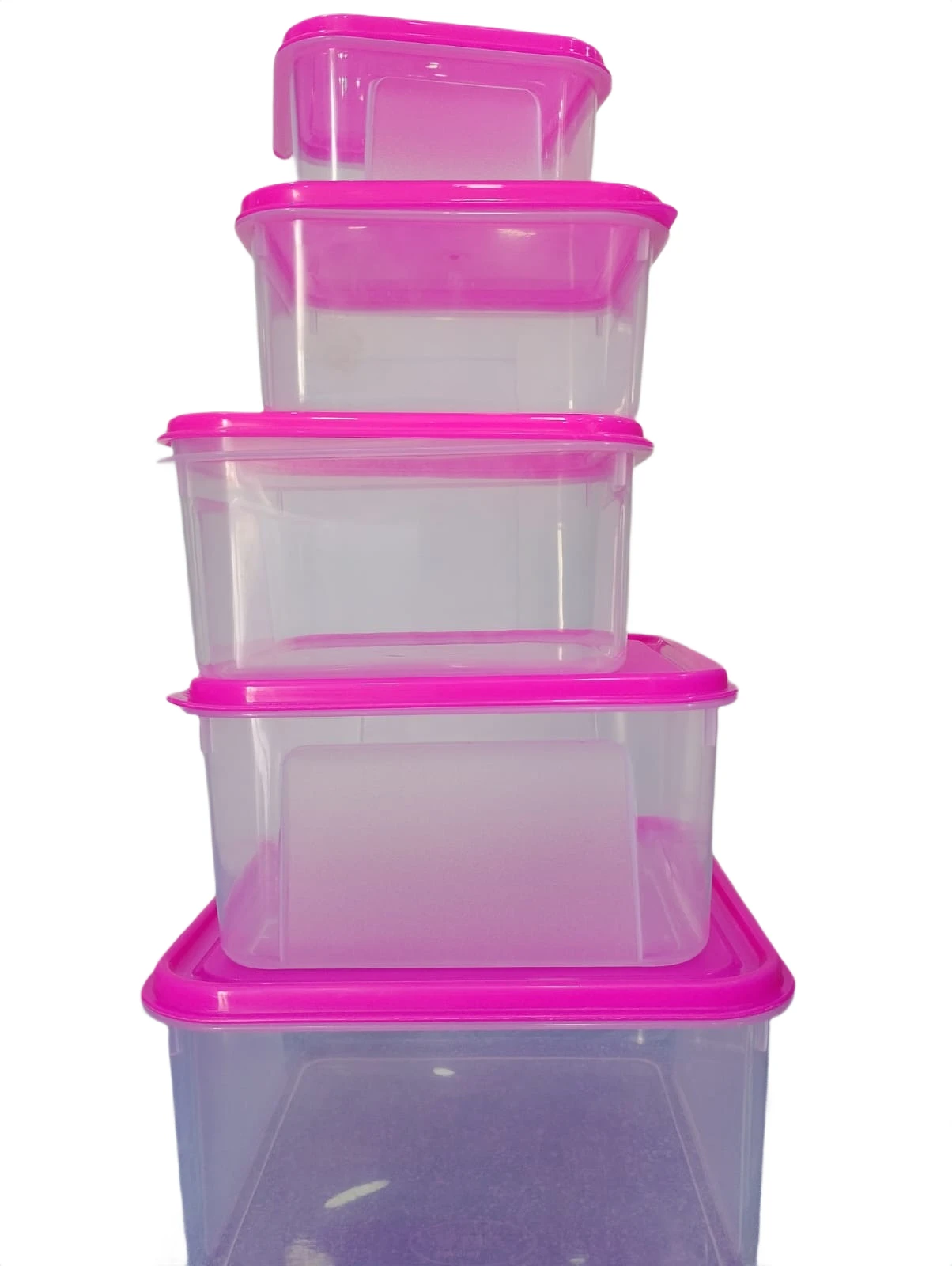 Keep your food fresh, organized, and easy to access with this stylish Plastic Container Set. Designed for everyday kitchen storage, this set includes 5 different sizes — 500 ml, 600 ml, 1200 ml, 2000 ml, and 3250 ml — making it perfect for storing everything from snacks and vegetables to leftovers and dry groceries. Made from high-quality, food-grade plastic, these containers are safe, durable, and reusable. The airtight lids help lock in freshness, prevent spills, and protect your food from moisture and odors. Their compact, stackable design saves space in your fridge, keeping it neat and well organized. The attractive pink color adds a modern touch to your kitchen while making the containers easy to identify. Ideal for home use, meal prep, and storing fruits, vegetables, curries, and dry items. Key Features: