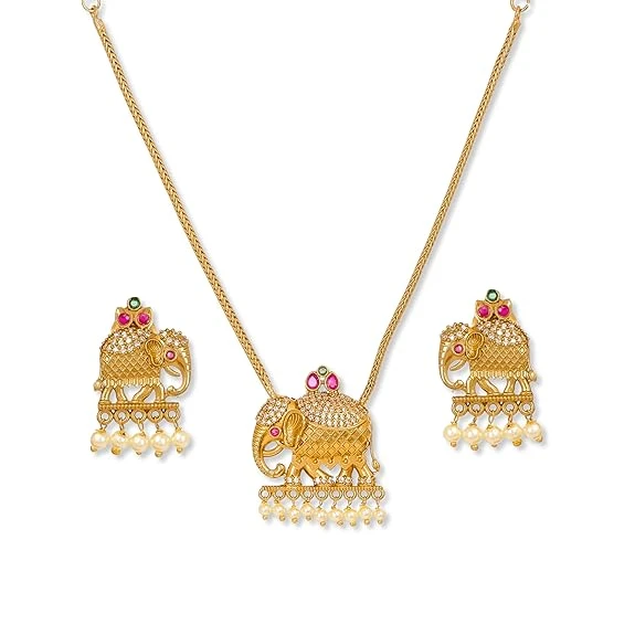 ZYRA JEWELS Traditional One gram Gold-Plated Elephant Design Choker Necklace Set