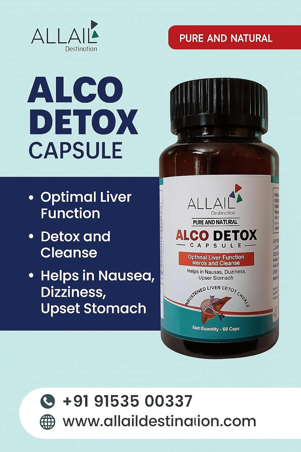 ALLAIL Alco Detox Capsules, 60 Caps, Optimal Liver Function, Detox and Cleanse.