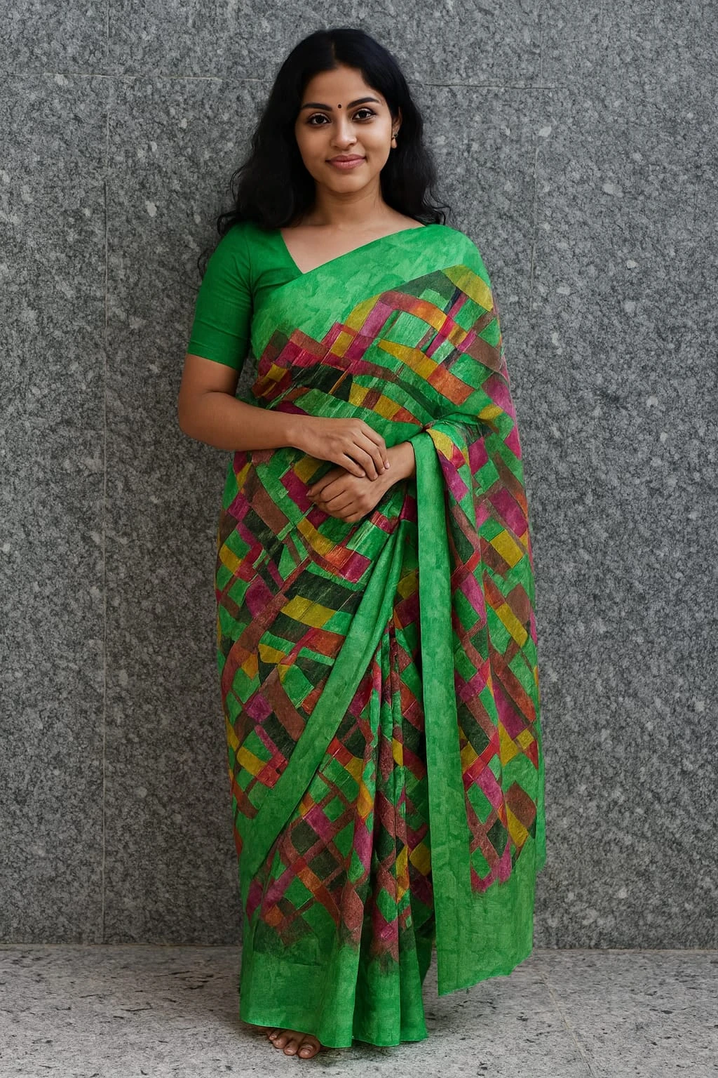 Elegant Combo of Plain Pink & Designer Green Cotton Sarees Traditional & Stylish Look without blouse Color: Green , pink Length : 5.25 Meter Each Fabric: Georgette |