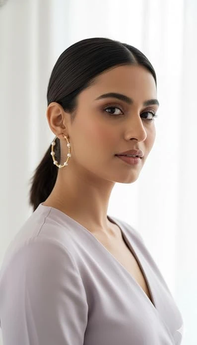 Gold and Pearl Beaded Hoop Earrings, Fashion Jewelry for Women, Elegant Round De