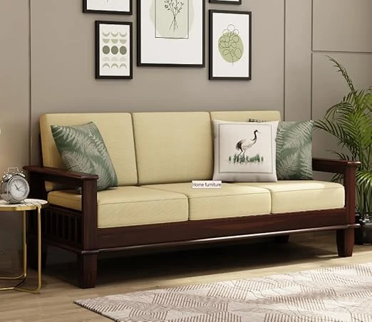 Home furniture Wooden Sofa Set for Living Room and Office 3 Three Seater Walnut