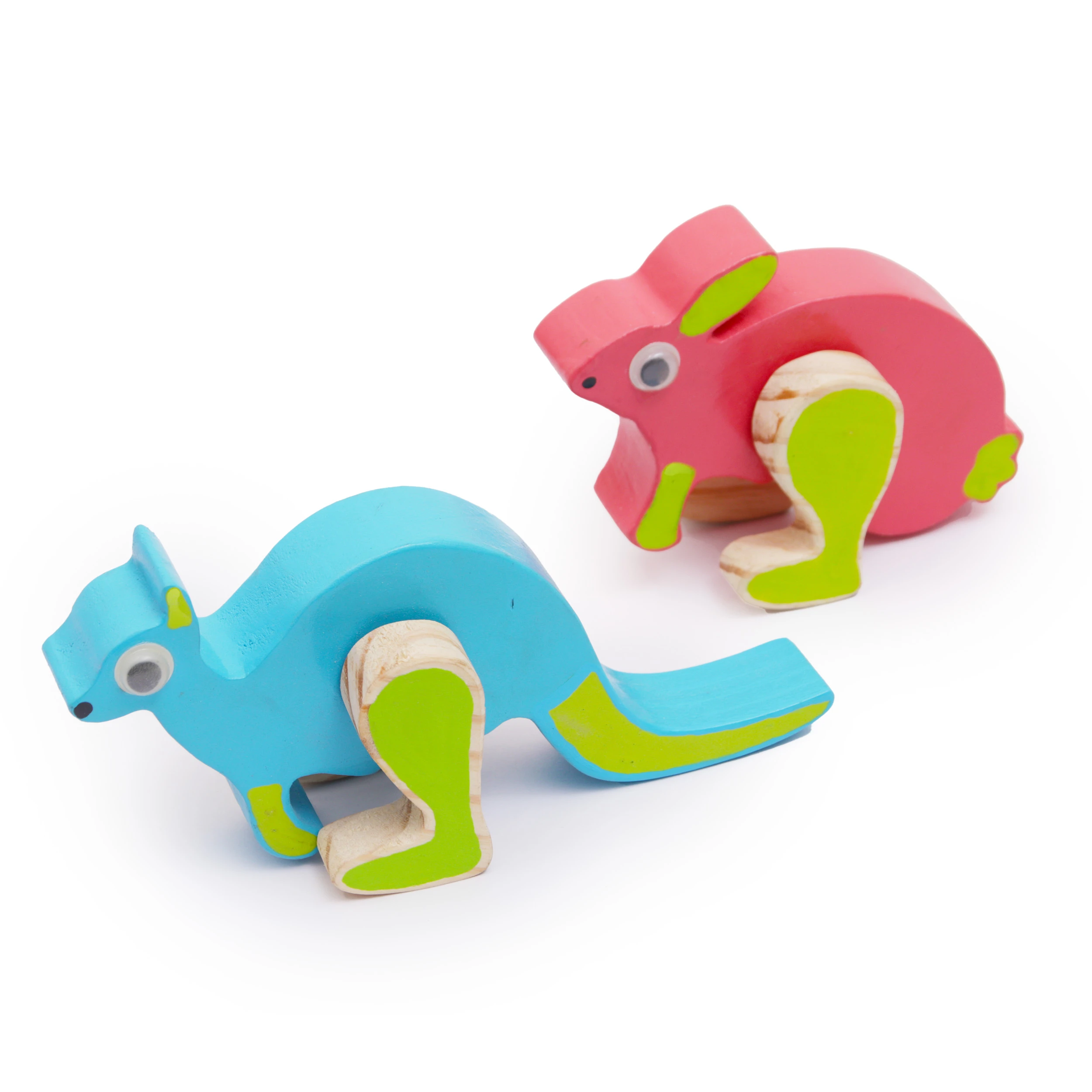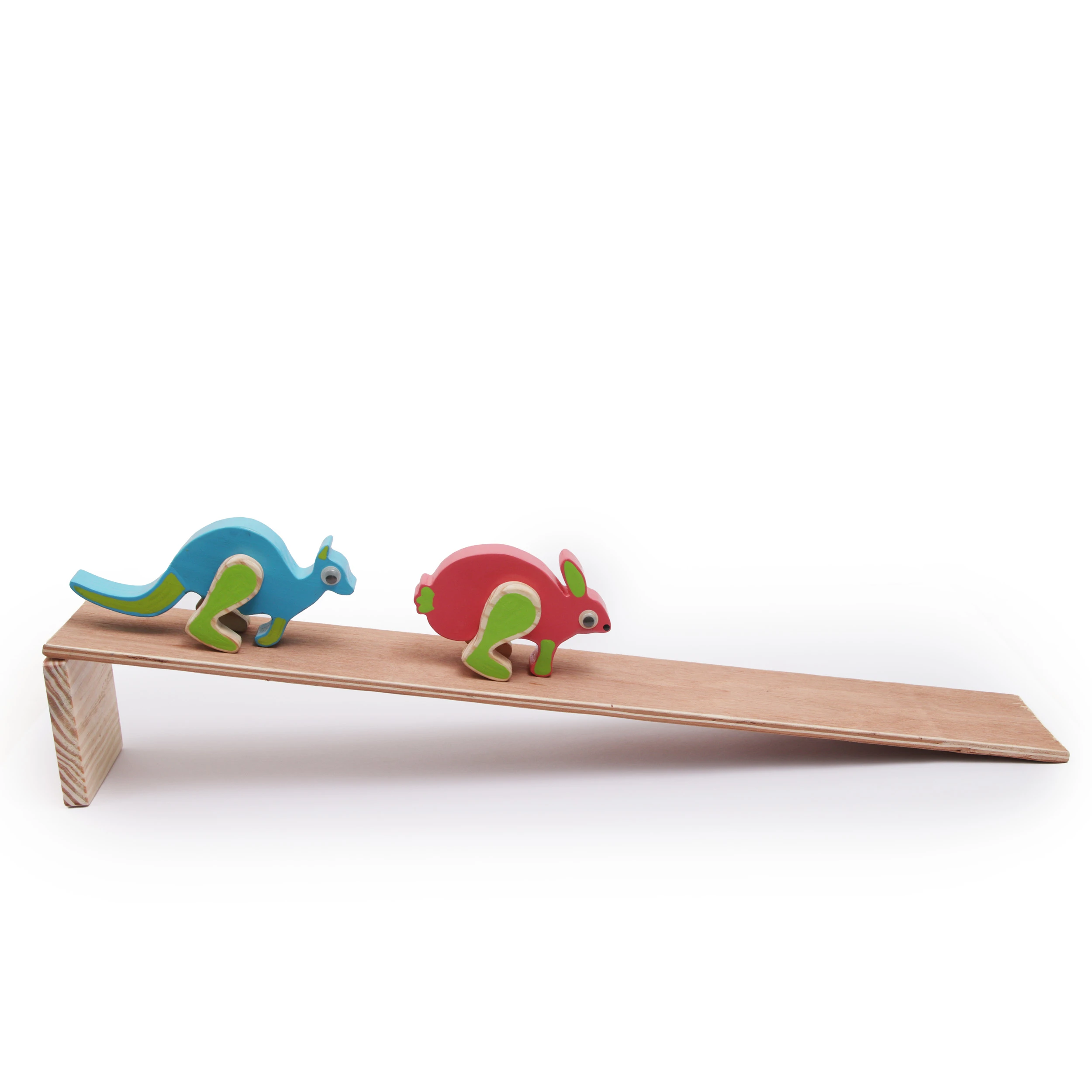 Description: Make playtime exciting with the Opa Toys Wooden Ramp Walking Kangaroo & Rabbit Set! This unique toy includes a ramp, a support stand, and two adorable animal figures that "walk" down the slope when placed at the top. Designed to spark curiosity and joy, it’s a fun way for kids to explore motion, gravity, and cause-and-effect play.