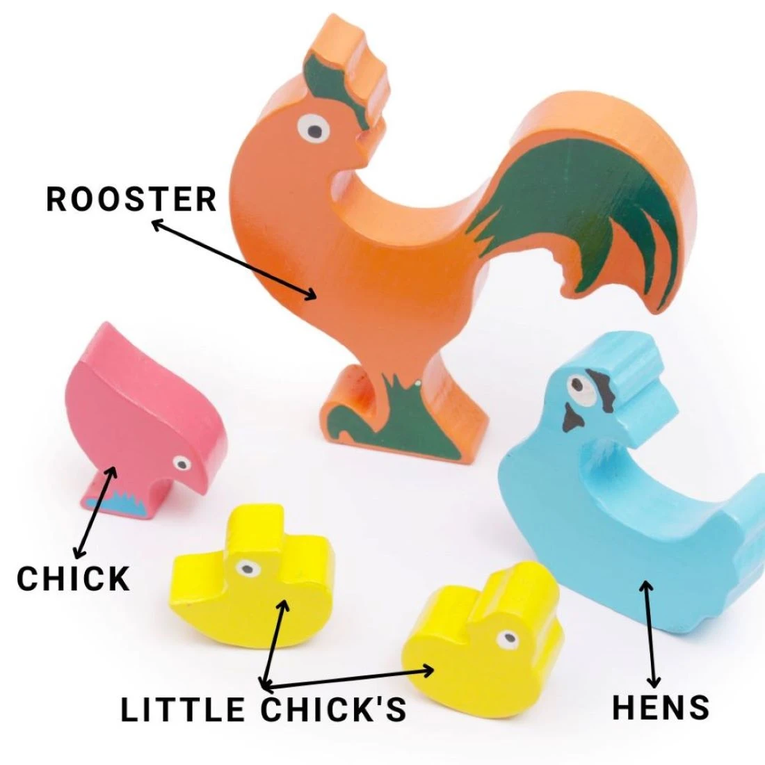 Introduce your child to the joy of learning with the Opa Toys Wooden Chicken Family Puzzle! Designed with a hen, chicks, and rooster in vibrant colors, this puzzle encourages kids to explore animal recognition, imaginative play, and problem-solving while keeping them engaged. Crafted from premium eco-friendly wood and coated with non-toxic, child-safe paint, this Montessori-inspired toy is safe, durable, and perfect for toddlers’ little hands. It enhances fine motor skills, memory, coordination, and creative thinking through fun play. This animal family puzzle is a wonderful blend of education and entertainment, making it an ideal choice for preschool learning, Montessori classrooms, and thoughtful gifting. SpecificationBrand: OpaToysProduct Name: Wooden Chicken Family PuzzleMaterial: Premium quality natural woodWeight: Lightweight, durable, easy to handleKey Features