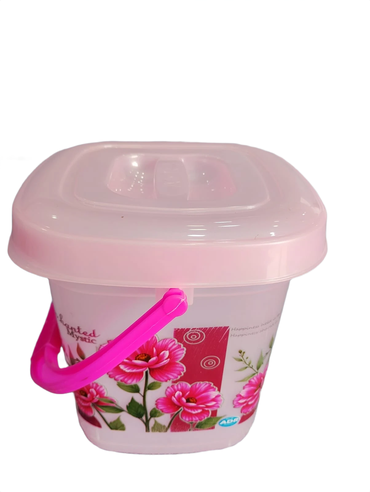 This Pink plastic bucket is designed for daily household use. It comes with a secure lid that keeps the contents clean and protected. The strong handle makes it easy to carry from one place to another.