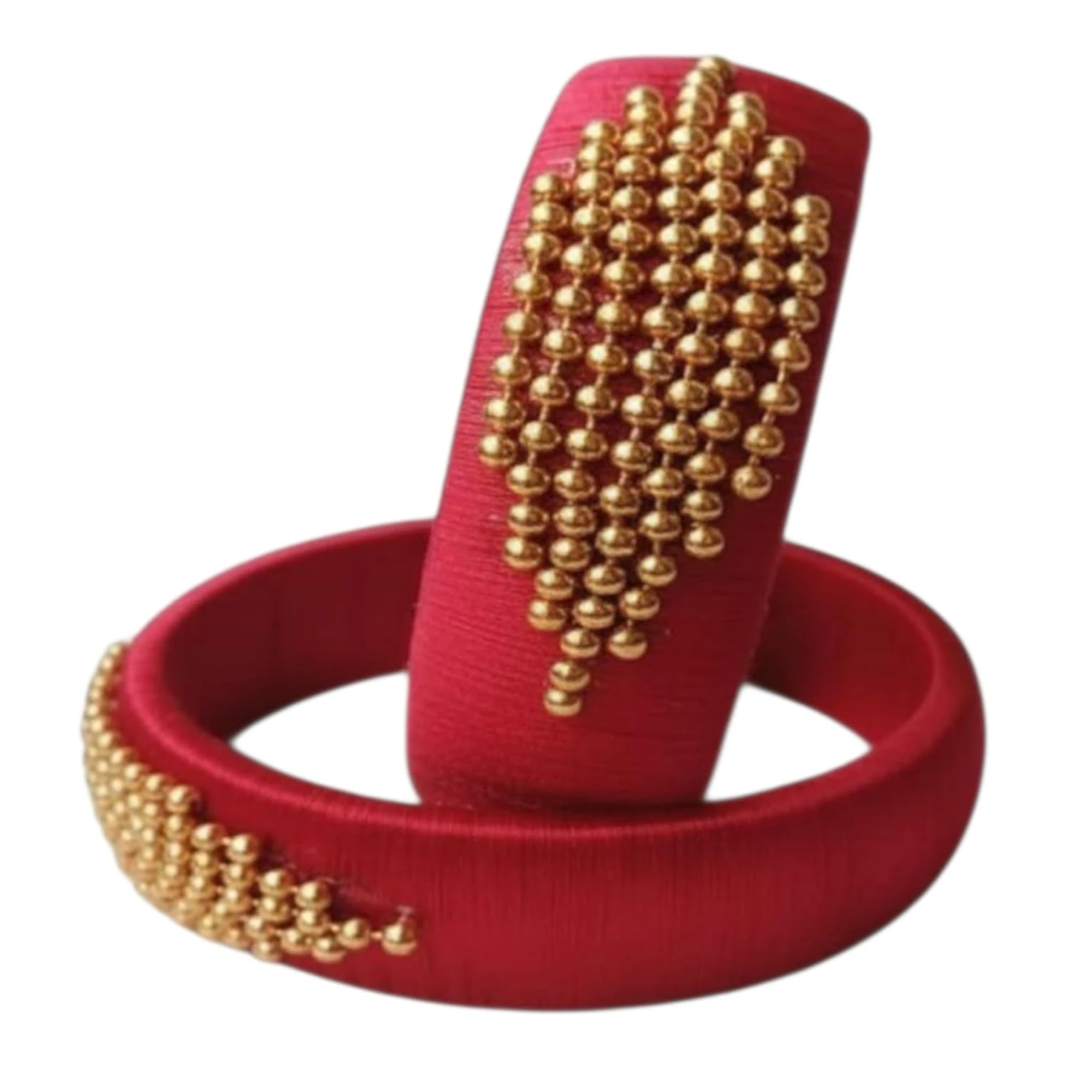 Traditional Red Silk Thread Bangles with Gold Beaded Design Wear Accessories, Se